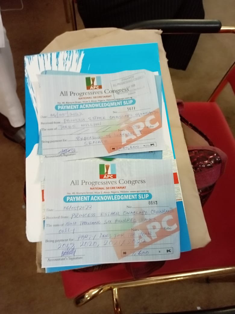 PICTURES: PRINCESS ESTHER ONALAPO OGUNBANJO, APC SANATE ASPIRANT OBTAIN NOMINATION FORM.